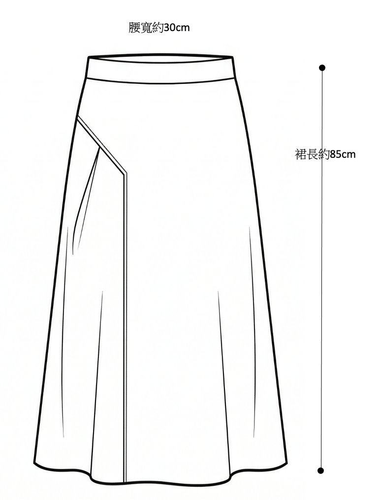 • A字傘狀大裙襬設計,能完美包容各種身型,有效遮掩馬鞍肉與腿部線條,展現極致纖長效果。