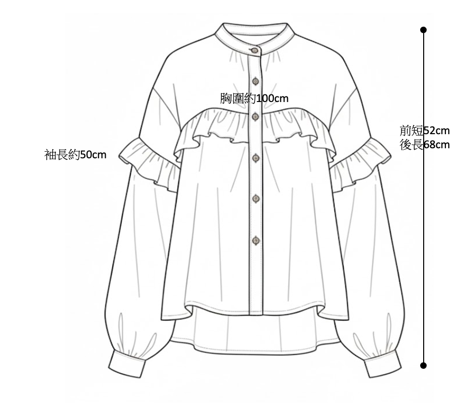 寬鬆的剪裁搭配燈籠袖設計,胸前及肩部優雅的雙層荷葉邊裝飾,帶來清新且層次豐富的視覺效果。